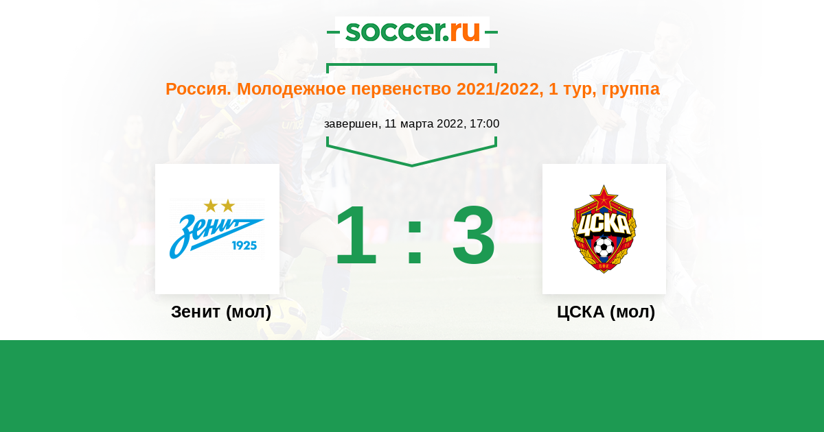 Зенит (мол) - ЦСКА (мол): обзор матча 11 марта 2022
