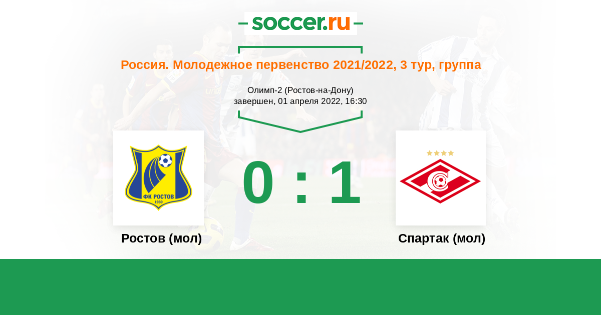 Ростов (мол) - Спартак (мол): обзор матча 1 апреля 2022