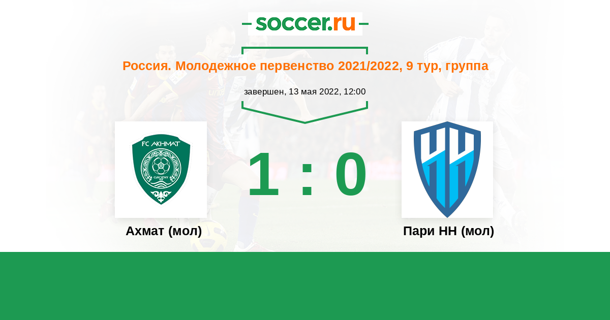 Ахмат (мол) - Пари НН (мол): обзор матча 13 мая 2022
