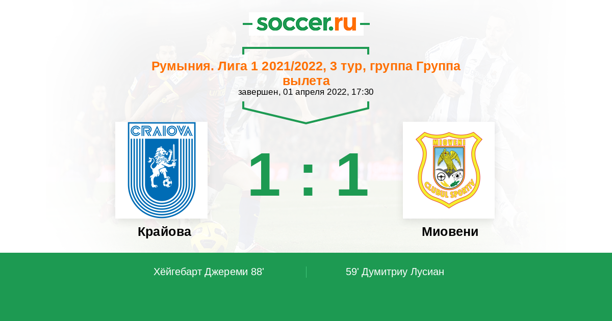 Крайова - Миовени: обзор матча 1 апреля 2022