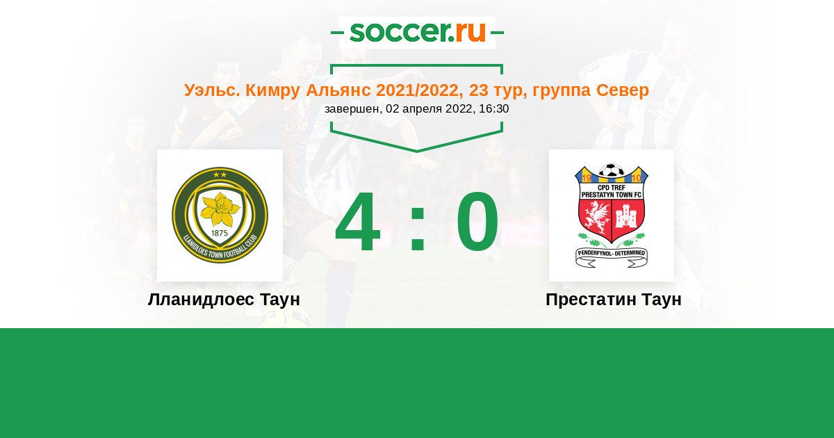 Лланидлоес Таун - Престатин Таун: обзор матча 2 апреля 2022