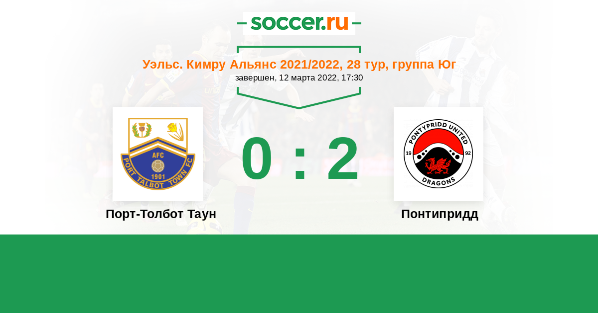 Порт-Толбот Таун - Понтипридд: обзор матча 12 марта 2022
