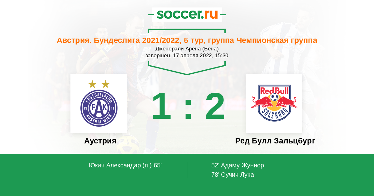 Аустрия - Ред Булл Зальцбург: обзор матча 17 апреля 2022
