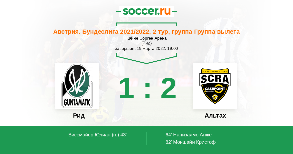 Рид - Альтах: обзор матча 19 марта 2022