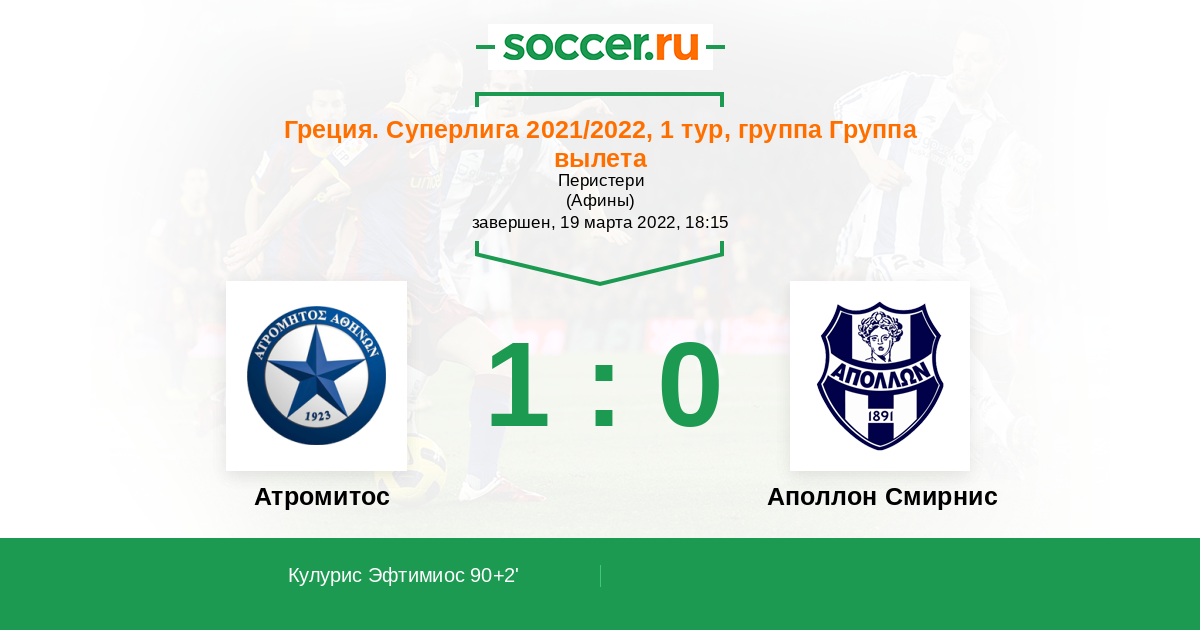 Атромитос - Аполлон Смирнис: обзор матча 19 марта 2022