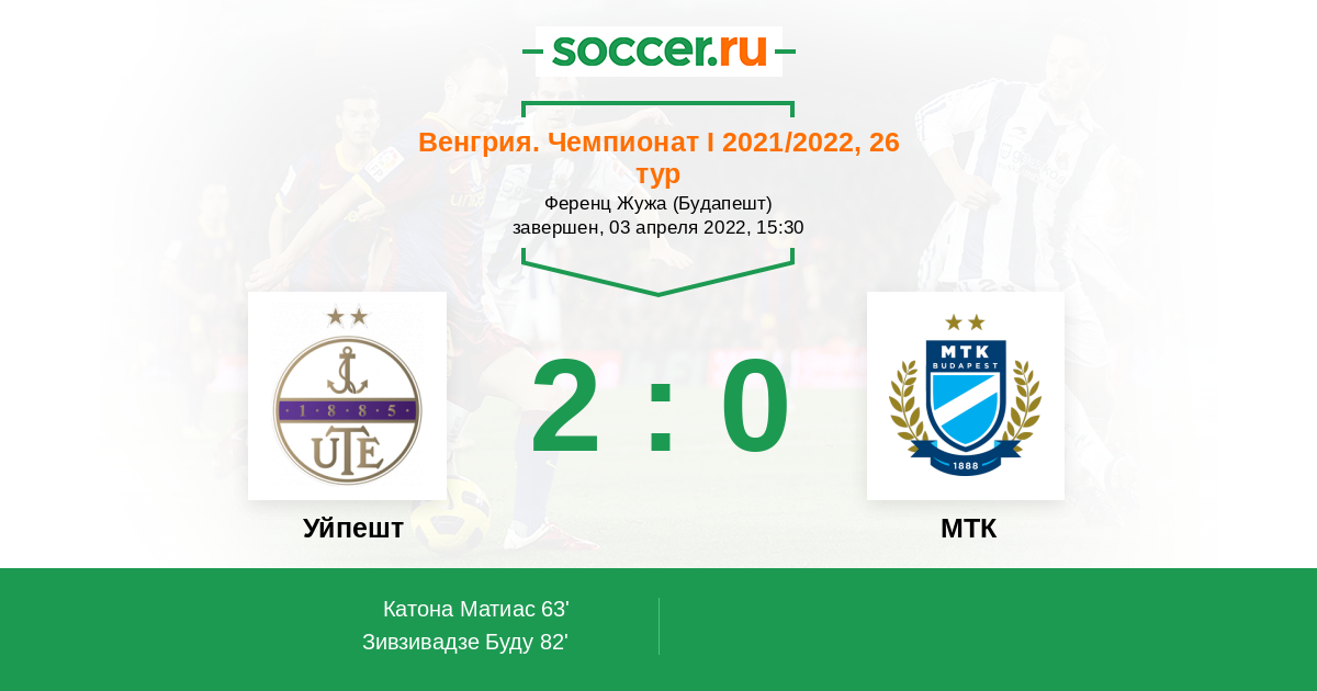 Уйпешт - МТК: обзор матча 3 апреля 2022