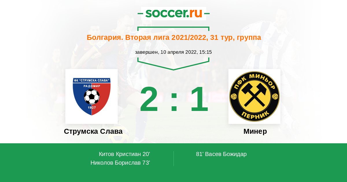 Струмска Слава - Минер: обзор матча 10 апреля 2022