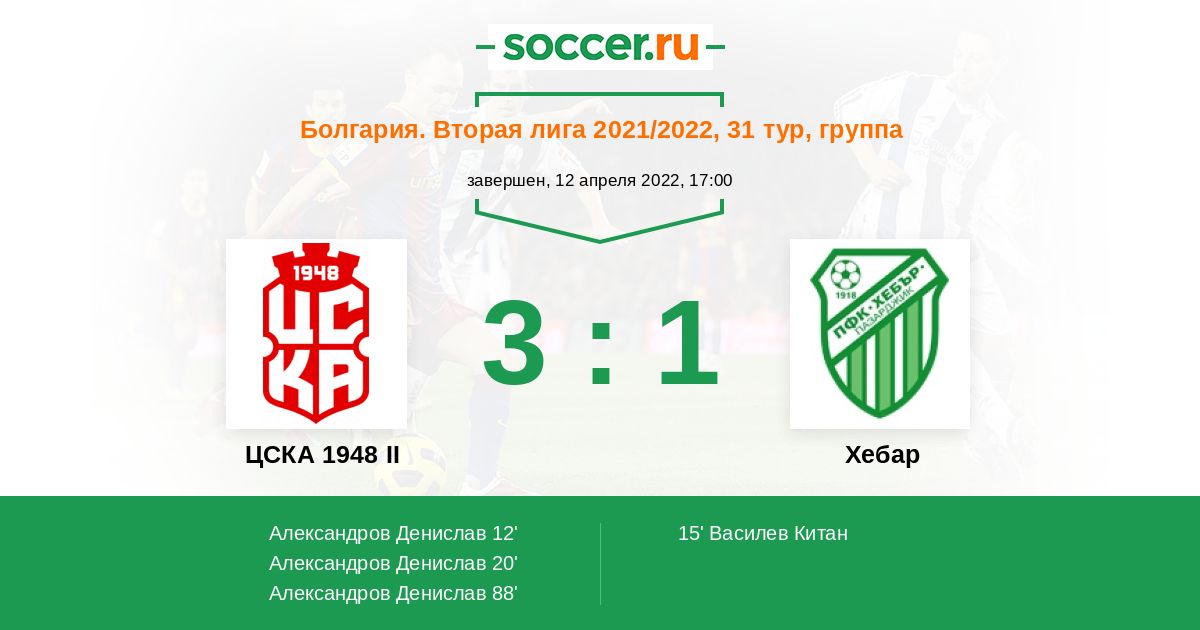 ЦСКА 1948 II - Хебар: обзор матча 12 апреля 2022