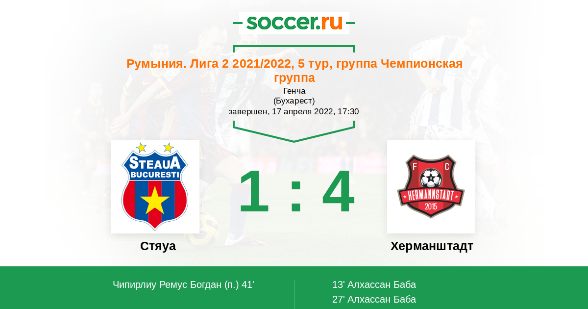 Стяуа - Херманштадт: обзор матча 17 апреля 2022