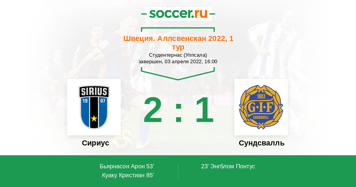 Сириус - Сундсвалль: обзор матча 3 апреля 2022