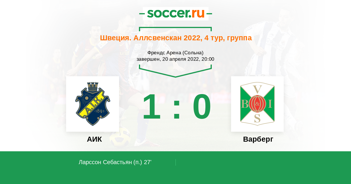 АИК - Варберг: обзор матча 20 апреля 2022