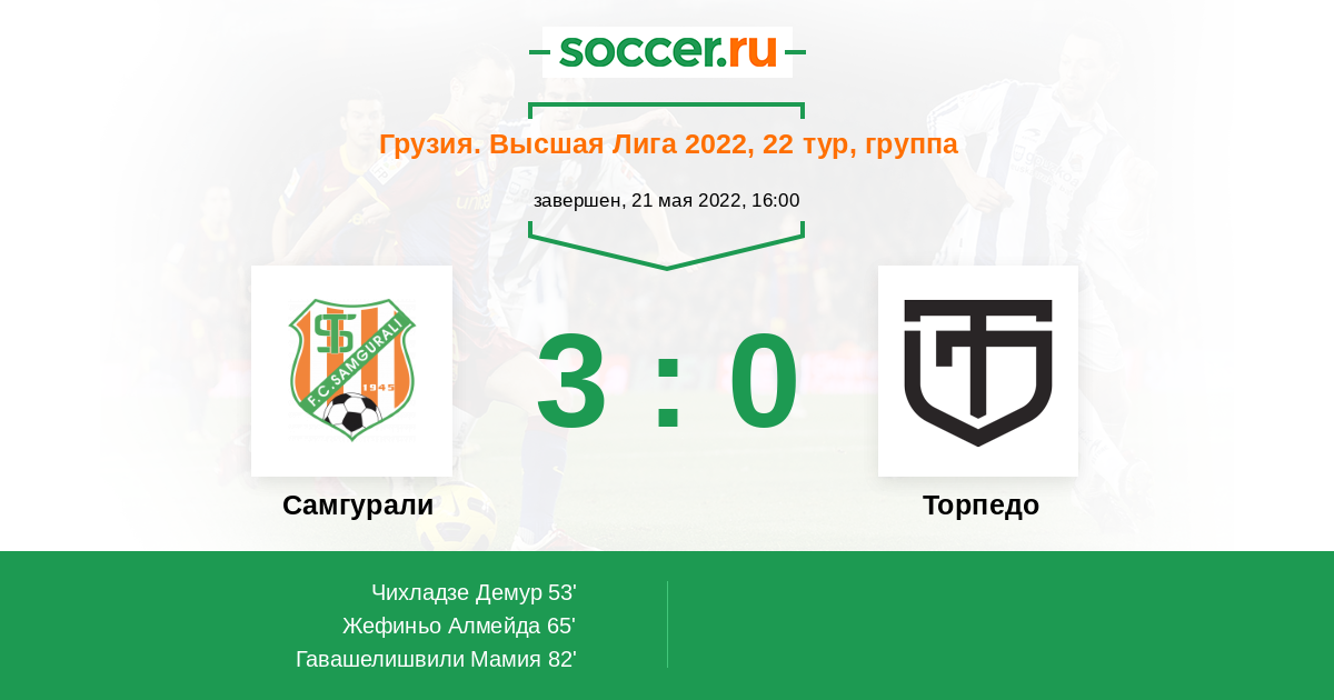 Самгурали - Торпедо: обзор матча 21 мая 2022