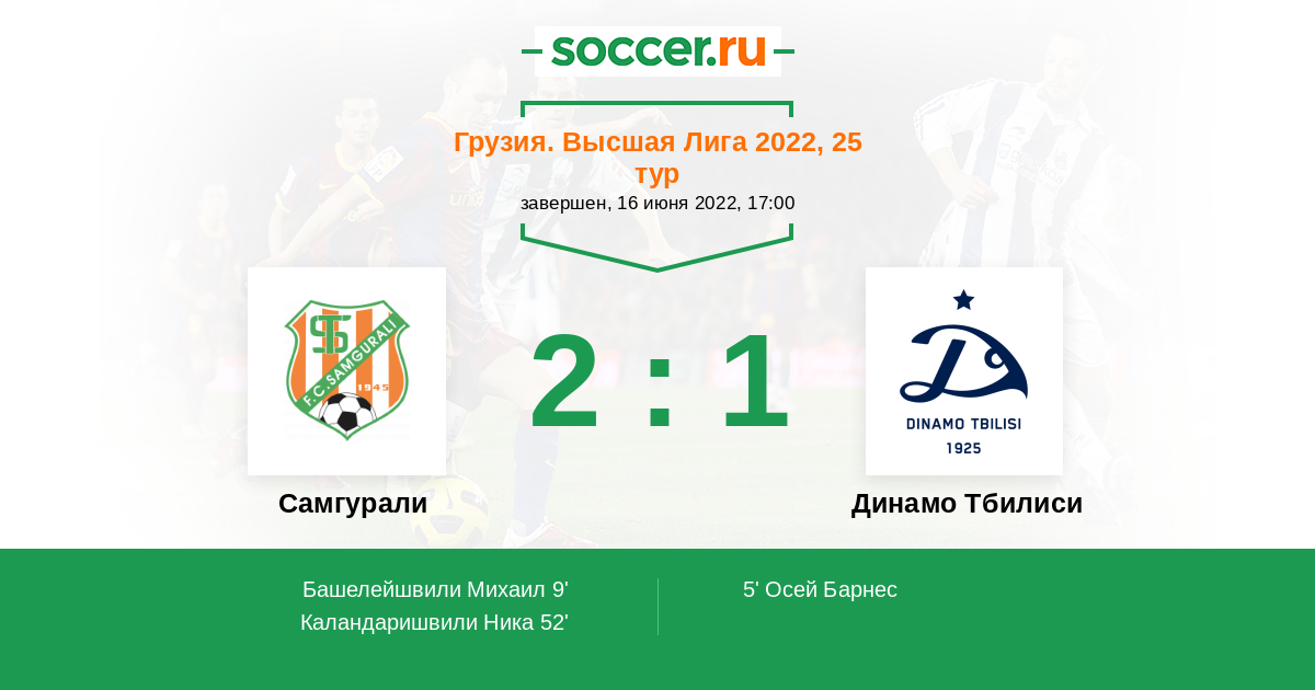 Самгурали - Динамо Тбилиси: обзор матча 16 июня 2022