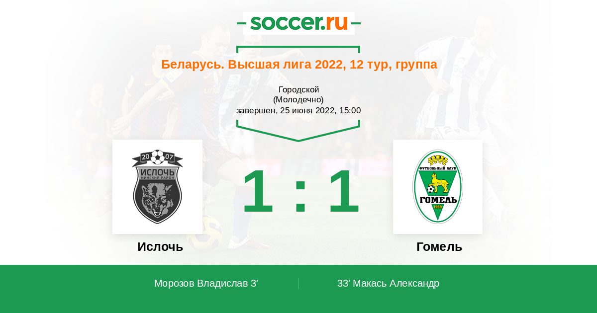 Ислочь - Гомель: обзор матча 25 июня 2022