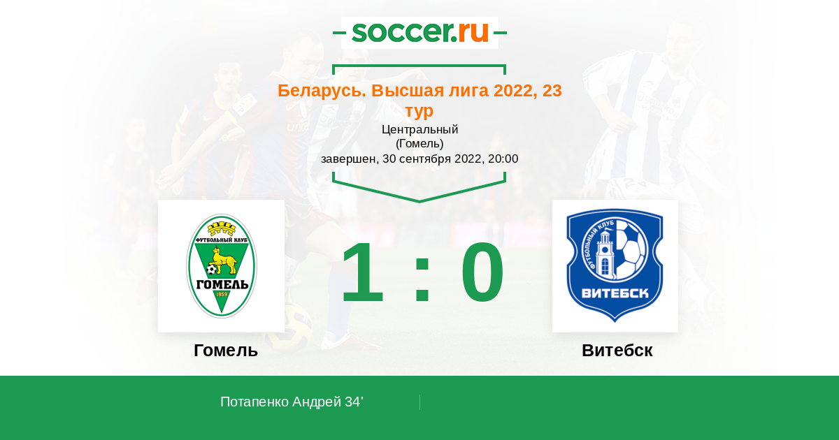 Гомель - Витебск: обзор матча 30 сентября 2022