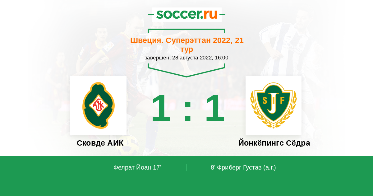 Сковде АИК - Йонкёпингс Сёдра: обзор матча 28 августа 2022