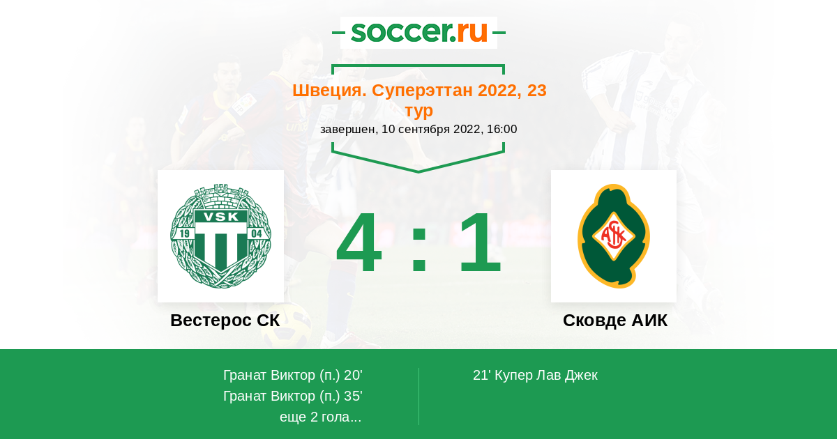 Вестерос СК - Сковде АИК: обзор матча 10 сентября 2022