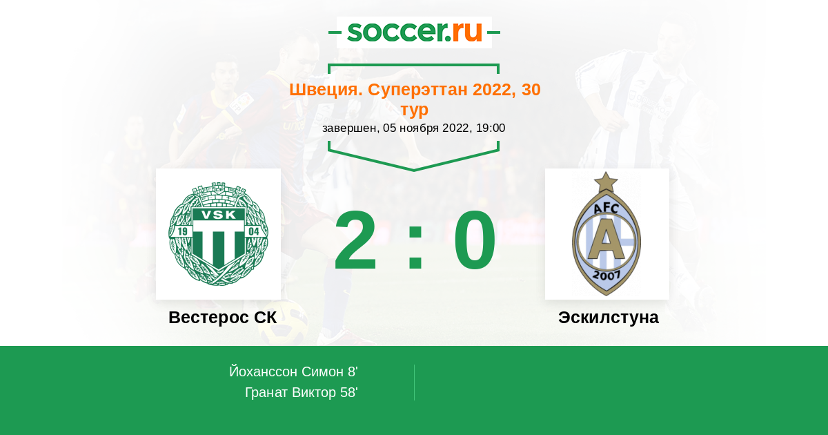 Вестерос СК - Эскилстуна: обзор матча 5 ноября 2022