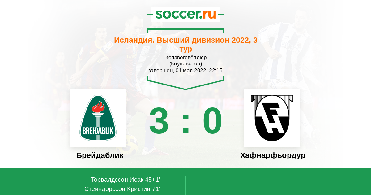 Брейдаблик - Хафнарфьордур: обзор матча 1 мая 2022