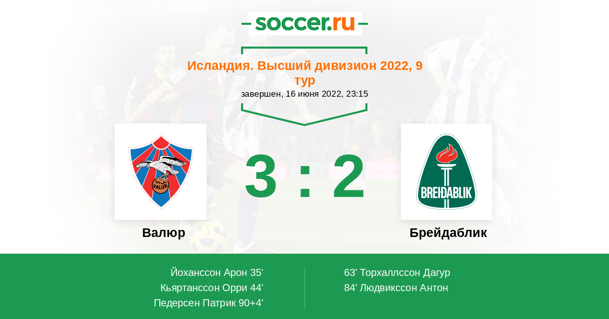 Валюр - Брейдаблик: обзор матча 16 июня 2022