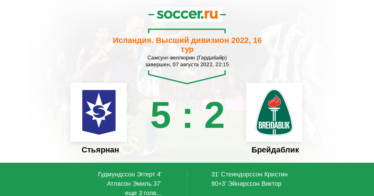 Стьярнан - Брейдаблик: обзор матча 7 августа 2022