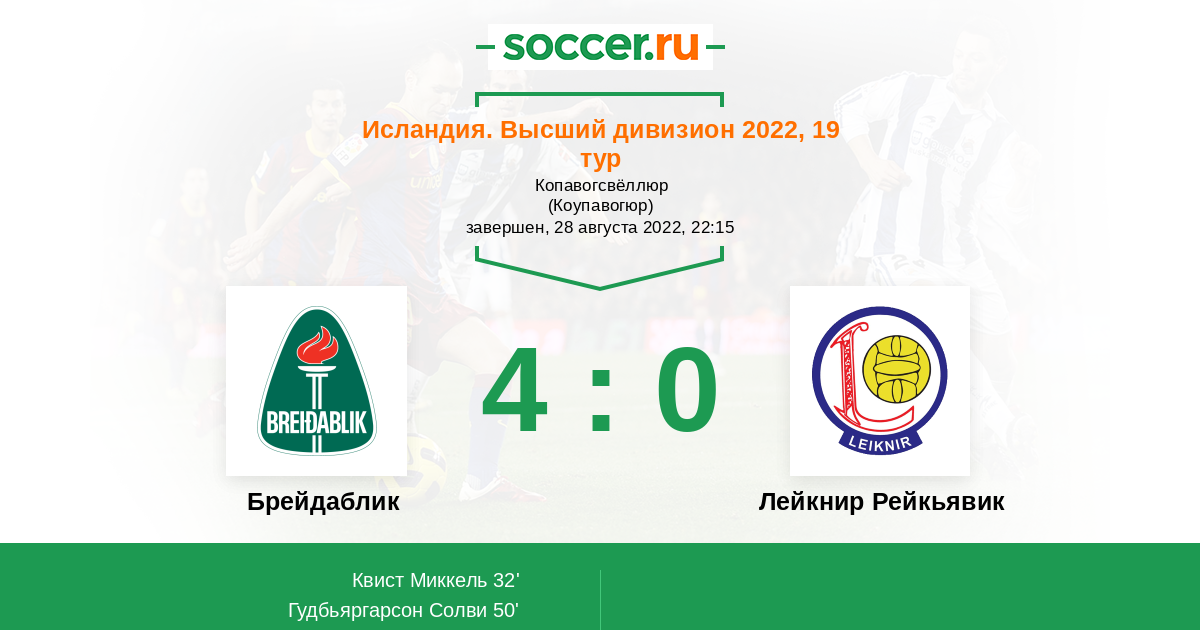 Брейдаблик - Лейкнир Рейкьявик: обзор матча 28 августа 2022