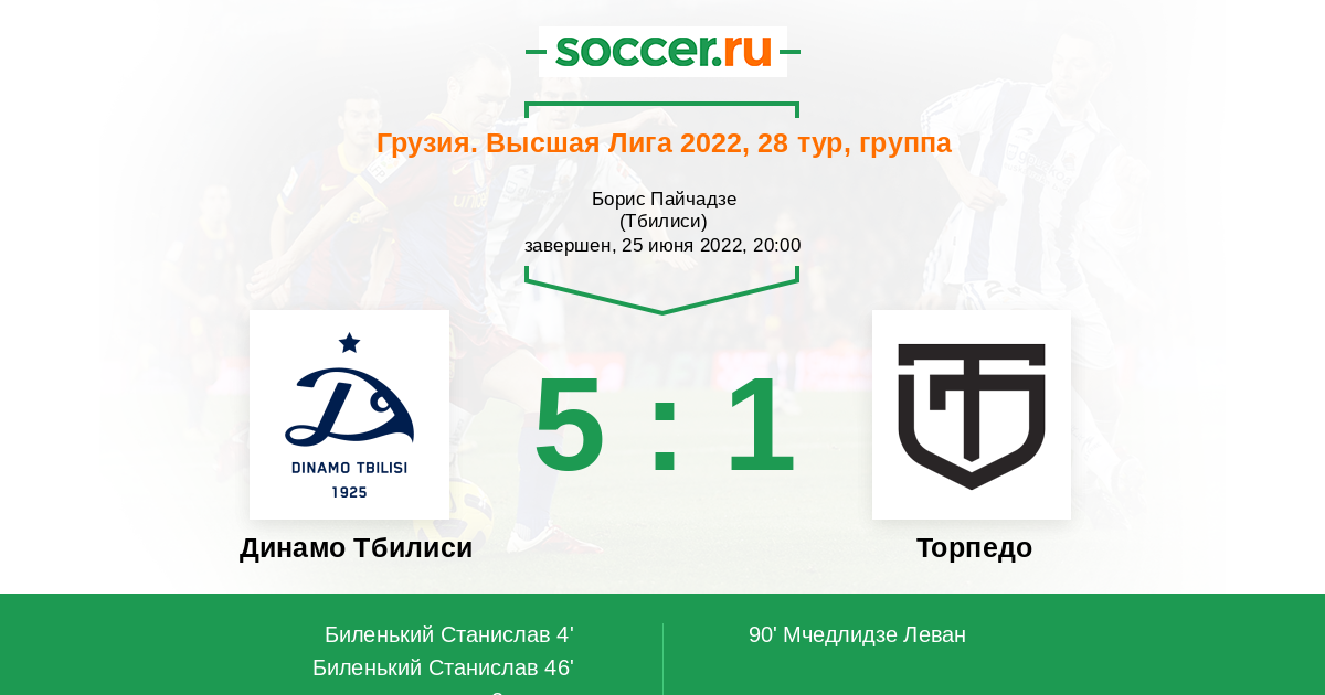 Динамо Тбилиси - Торпедо: обзор матча 25 июня 2022