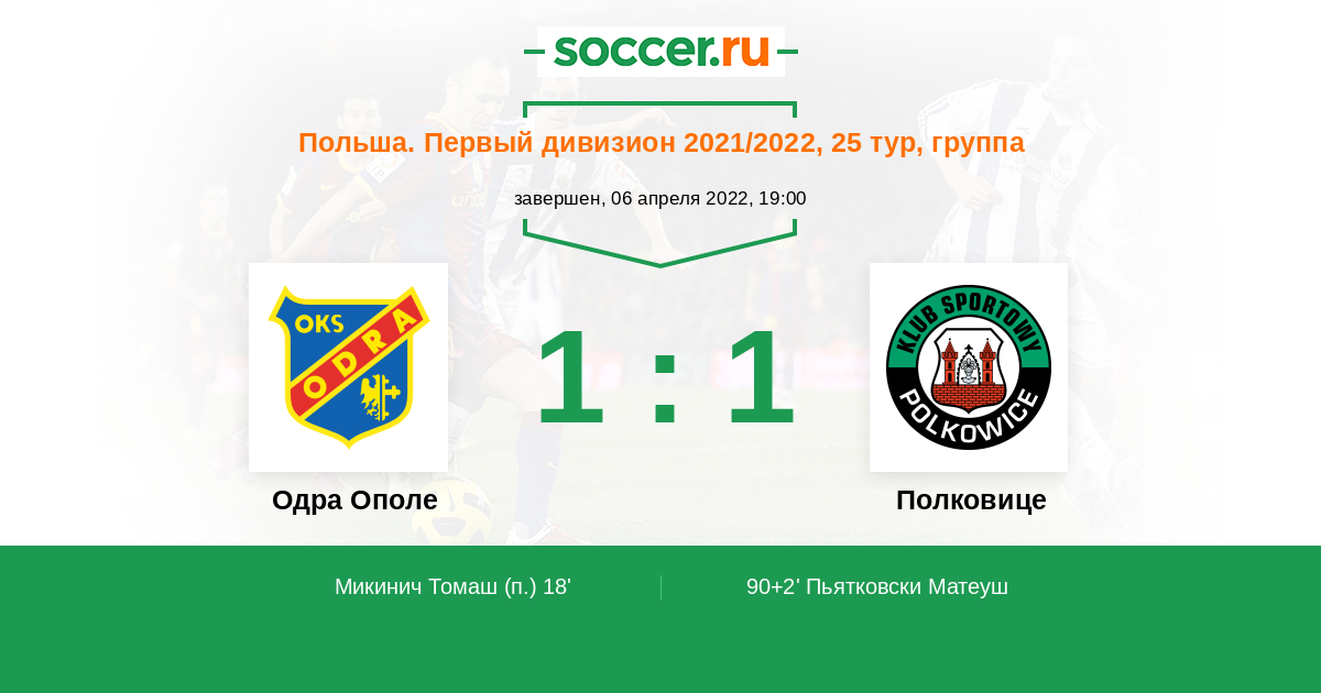 Одра Ополе - Полковице: обзор матча 6 апреля 2022