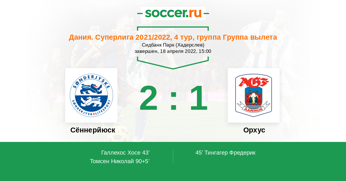 Сённерйюск - Орхус: обзор матча 18 апреля 2022