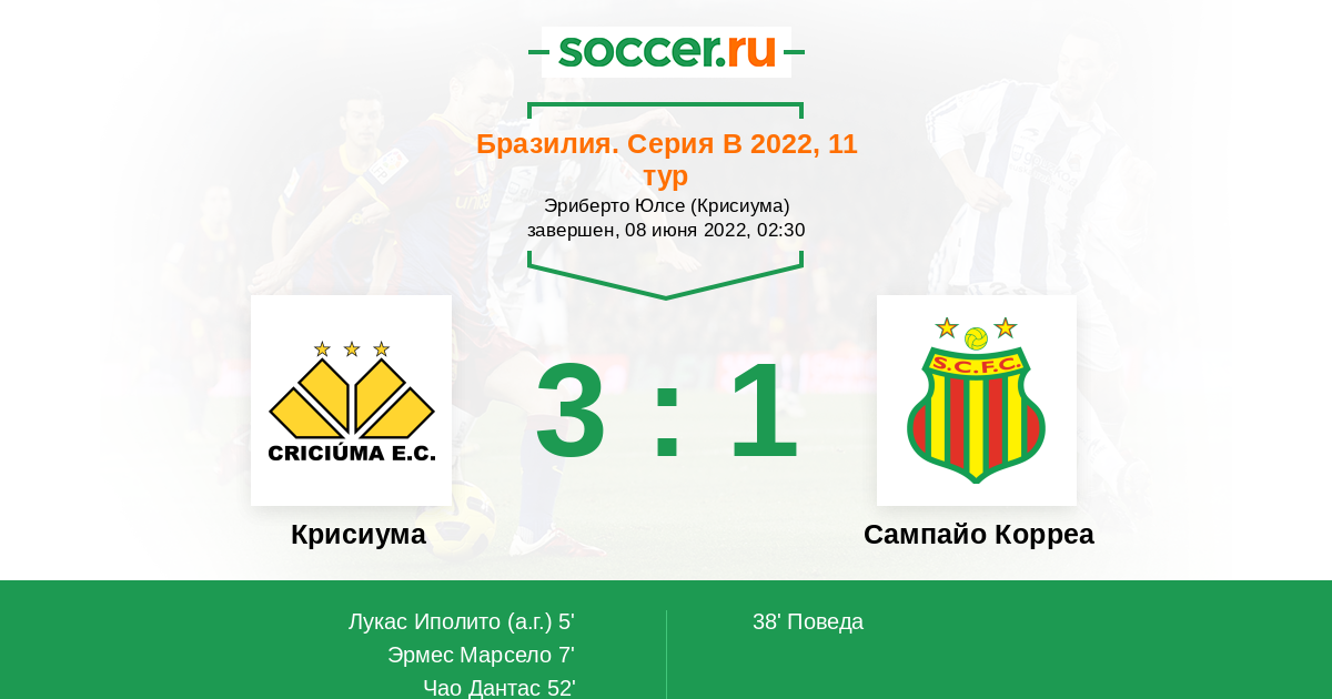 Крисиума - Сампайо Корреа: обзор матча 8 июня 2022
