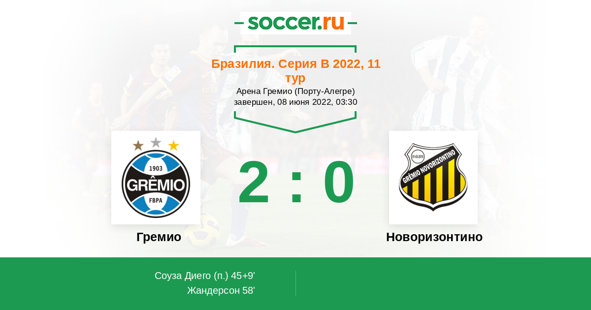 Гремио - Новоризонтино: обзор матча 8 июня 2022
