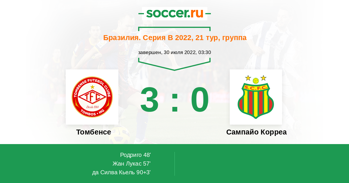 Томбенсе - Сампайо Корреа: обзор матча 30 июля 2022