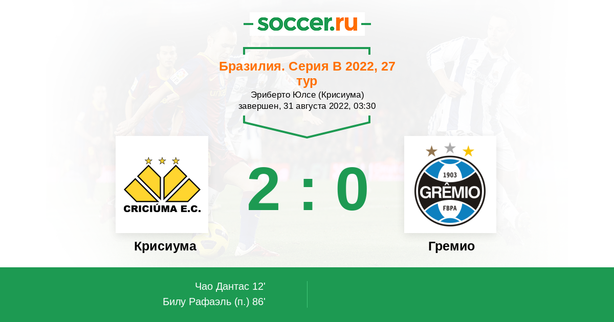 Крисиума - Гремио: обзор матча 31 августа 2022