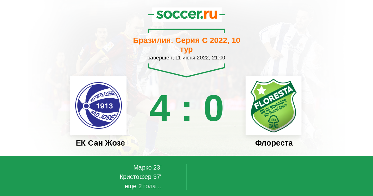 ЕК Сан Жозе - Флореста: обзор матча 11 июня 2022
