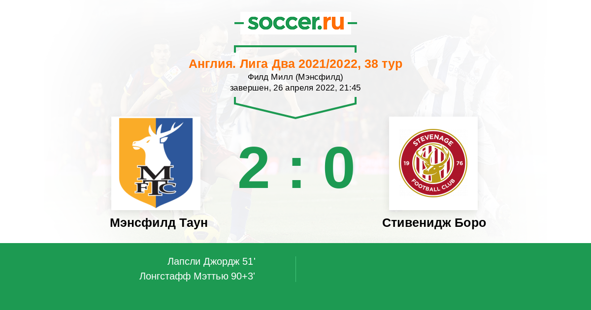 Мэнсфилд Таун - Стивенидж Боро: обзор матча 26 апреля 2022