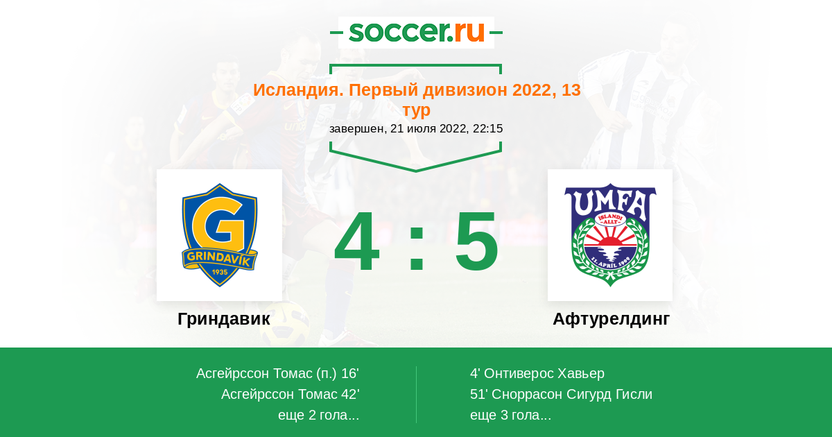 Гриндавик - Афтурелдинг: обзор матча 21 июля 2022
