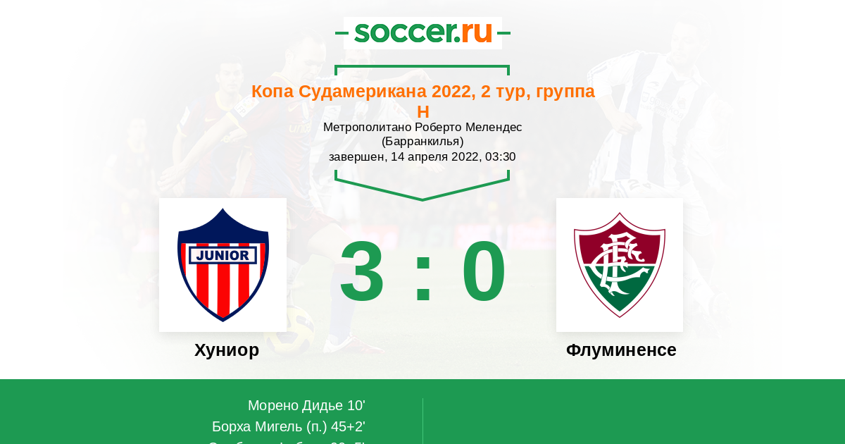 Хуниор - Флуминенсе: обзор матча 14 апреля 2022