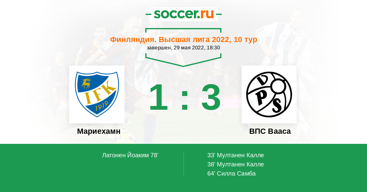 Мариехамн - ВПС Вааса: обзор матча 29 мая 2022