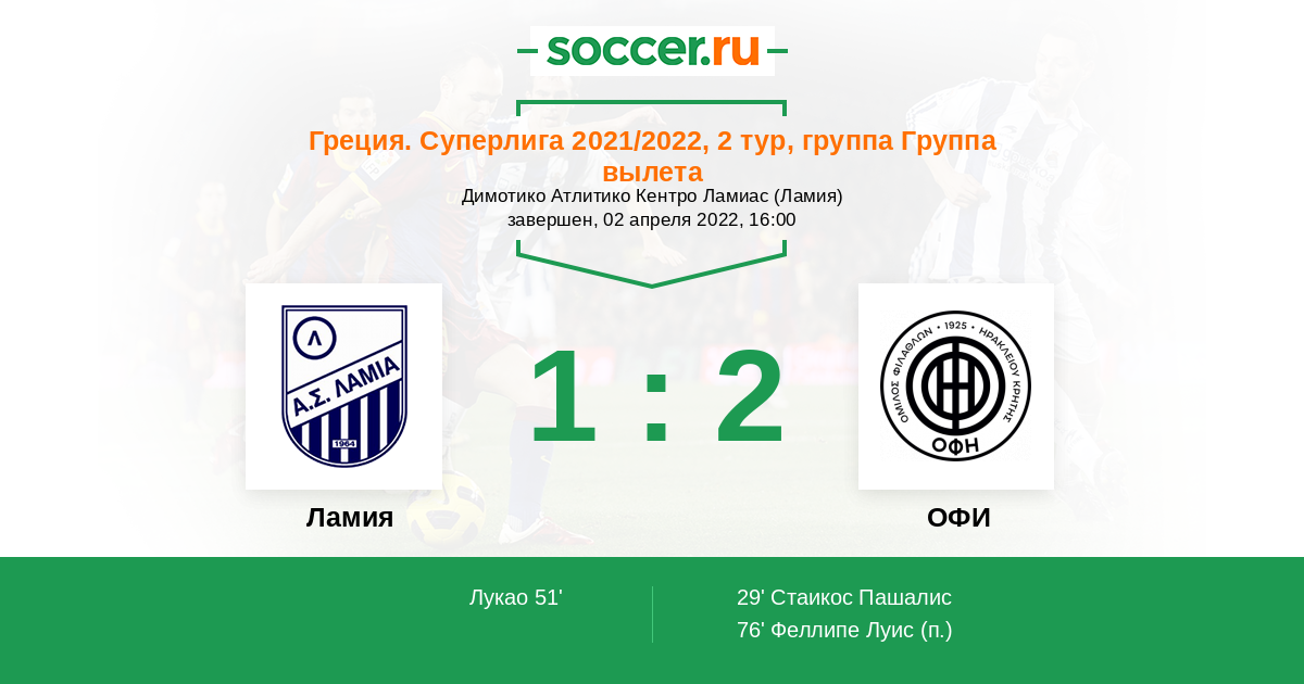 Ламия - ОФИ: обзор матча 2 апреля 2022