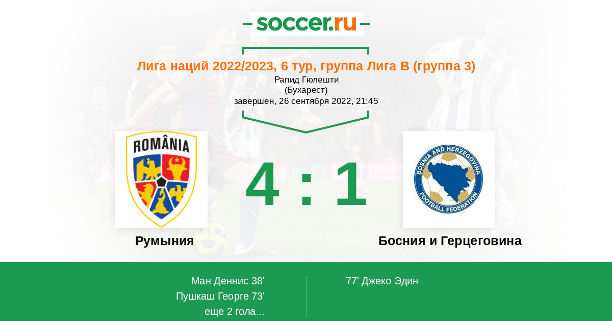Румыния - Босния и Герцеговина: обзор матча 26 сентября 2022