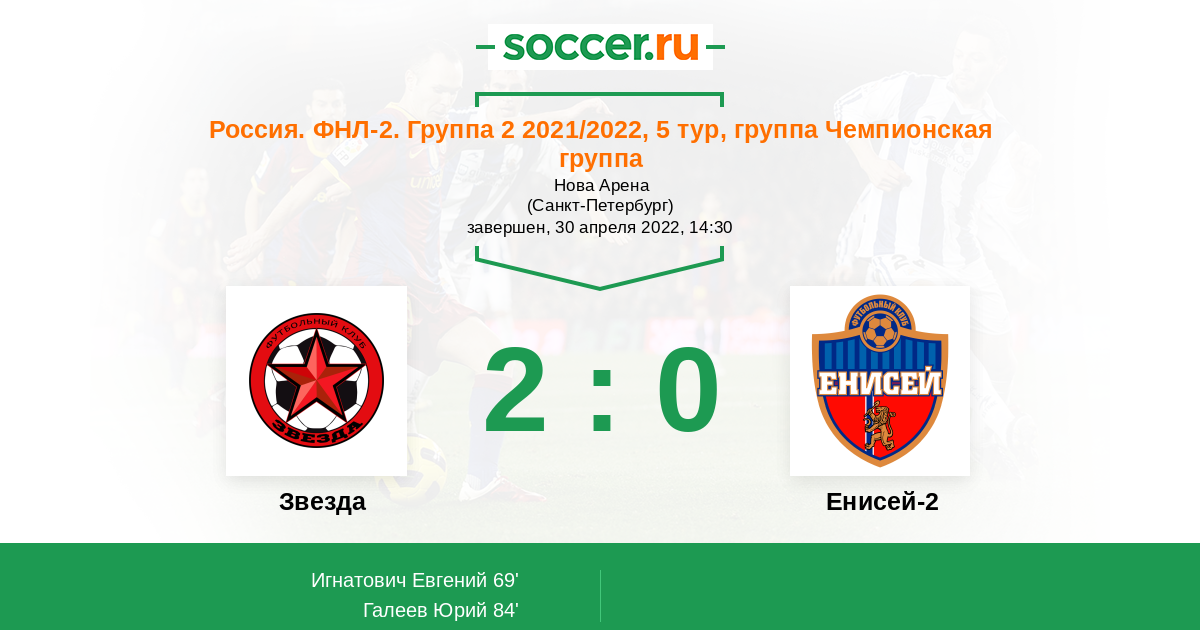Звезда - Енисей-2: обзор матча 30 апреля 2022