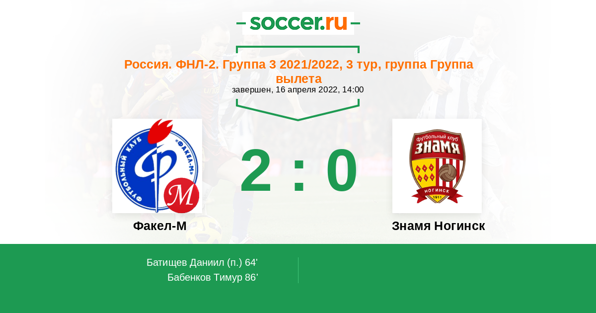 Факел-М - Знамя Ногинск: обзор матча 16 апреля 2022