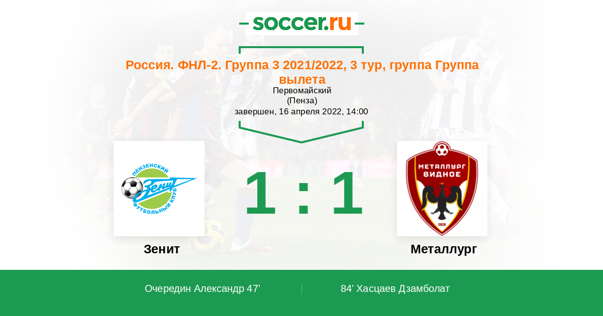 Зенит - Металлург: обзор матча 16 апреля 2022