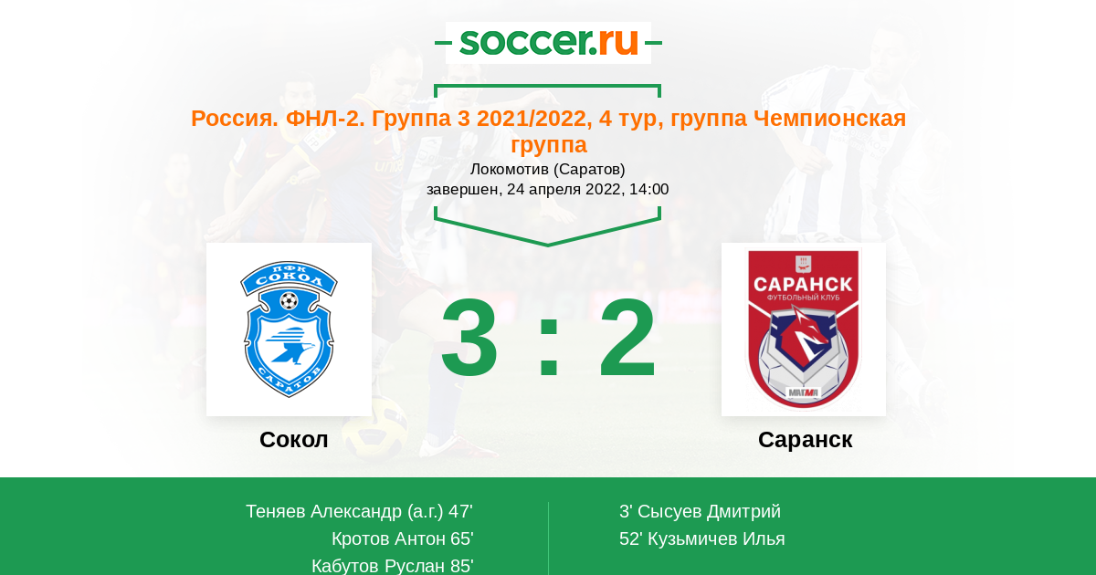 Сокол - Саранск: обзор матча 24 апреля 2022