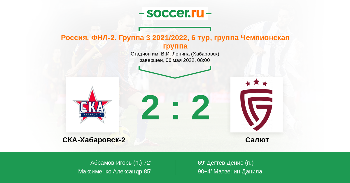 СКА-Хабаровск-2 - Салют: обзор матча 6 мая 2022