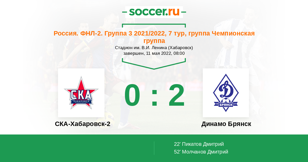 СКА-Хабаровск-2 - Динамо Брянск: обзор матча 11 мая 2022