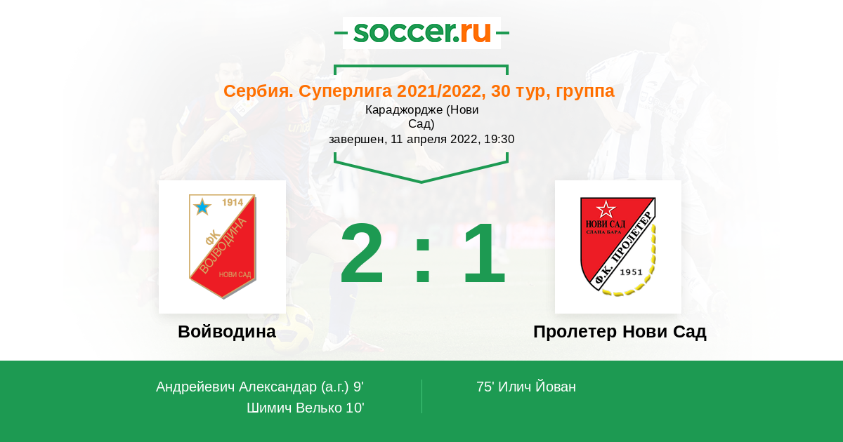 Войводина - Пролетер Нови Сад: обзор матча 11 апреля 2022