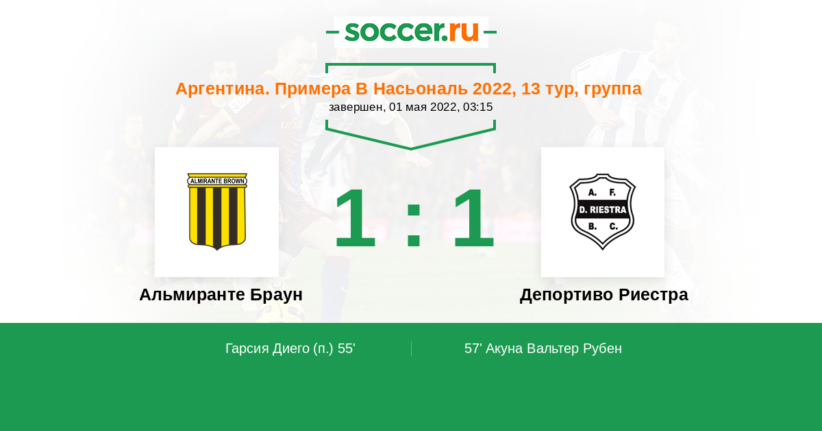 Альмиранте Браун - Депортиво Риестра: обзор матча 1 мая 2022