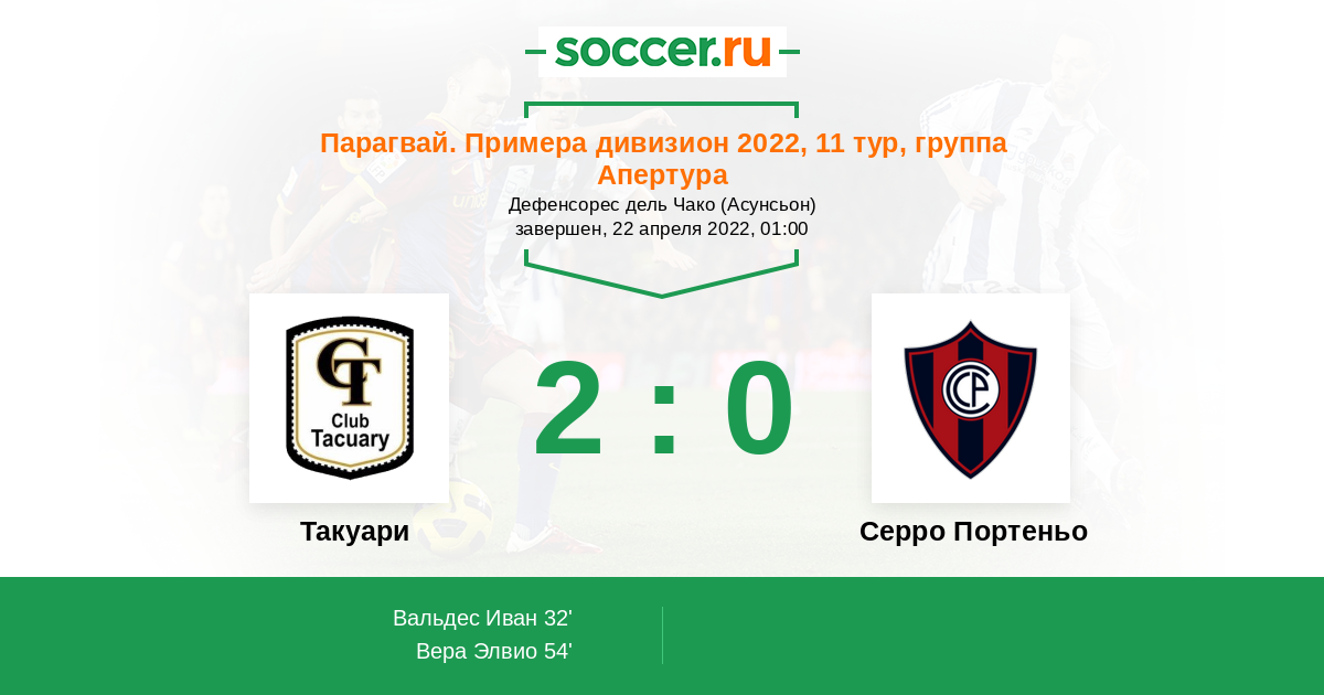 Такуари - Серро Портеньо: обзор матча 22 апреля 2022