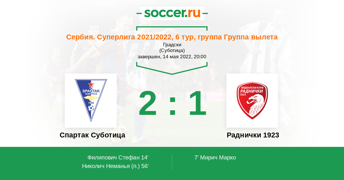 Спартак Суботица - Раднички 1923: обзор матча 14 мая 2022